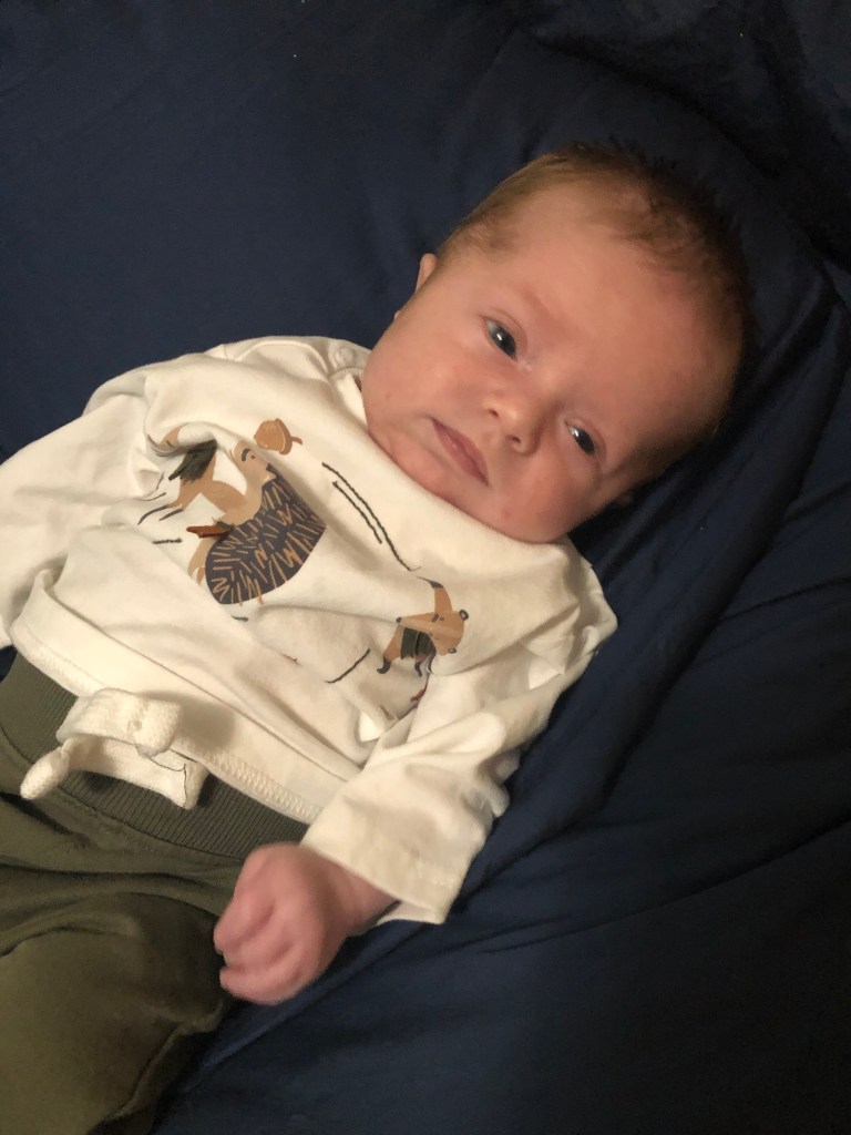 The second time came at almost a month old. We were putting him on his tummy for tummy time. Knowing the benefits of tummy time for development and strength, I wanted to get him started early. He was not a happy camper! I have a video where my cat appears to be taunting him, and at the end of the video, he surprises us once again and rolls over at only a month old! He’s a strong little guy.